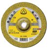 El disco de desbaste es apto para la utilización universal y convence en la amoladora angular por su alta alta agresividad y dureza, junto con su larga vida útil. Klingspor ofrece el producto en múltiples diámetros, de modo que cualquier usuario encuentra un disco de desbaste adecuado para el trabajo que quiera realizar. Los discos poseen una forma abombada. Los datos sobre la velocidad máxima admisible figuran en la etiqueta. Si los discos de desbaste Kronenflex se utilizan con los valores indicados está garantizado en todo momento el uso seguro.