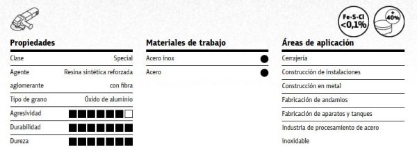 La ventaja esencial del modelo A 960 TZ Special radica en su corte fino que mantiene pequeña la superficie de mecanizado y ayuda a mantener lo más baja posible la carga térmica. Debido a la escasa generación de calor, también se reduce el riesgo de aparición de decoloraciones. Este es uno de los mayores retos en el corte de acero inoxidable. Al mismo tiempo, a pesar de su reducido grosor, el disco es muy estable y fiable en el uso. Para este fin, Klingspor utiliza tejidos de fibra de vidrio especiales. Gracias al grano sintético con sus características constantes, este producto representa una solución de alta calidad para múltiples aplicaciones.