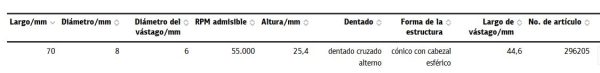 El modelo HF 100 L está disponible con diferentes diámetros de cabeza y es apropiado para el desbarbado, el mecanizado de contornos, el biselado y redondeado, así como el igualado de cordones de soldadura o la modificación de geometrías de pieza, incluso en áreas de difícil acceso. Según el diámetro de la cabeza y el material mecanizado varía la velocidad máxima admisible. Se recomienda la aplicación en el rango de revoluciones medio. Esto asegura unos resultados de fresado precisos y alarga la vida útil. Para evitar el desgaste prematuro y el riesgo de accidentes, la fresa de metal duro solo se debería utilizar con sistemas de sujeción y accionamientos sin juego.