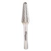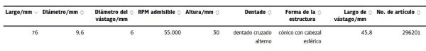Para alcanzar de manera flexible incluso áreas de difícil acceso, la fresa tiene una forma cónica de cabeza redonda. Los diferentes dentados aseguran resultados óptimos en la aplicación. El metal duro, la geometría y el dentado, en combinación con una larga vida útil, permiten conseguir una tasa de arranque y de remoción óptima y rentable. Además, del dentado estándar (Cut 2), Klingspor ofrece la fresa de metal duro HF 100 L en diferentes versiones, con el fin de proporcionar resultados óptimos en cada mecanizado. Antes de la entrega, cada fresa es sometida a un estricto control, en el marco del cual se comprueban, entre otras, la calidad del material, la exactitud dimensional y la ejecución perfecta de los puntos de soldadura. De esta manera quedan garantizadas una vida útil muy larga y la máxima seguridad en la aplicación.