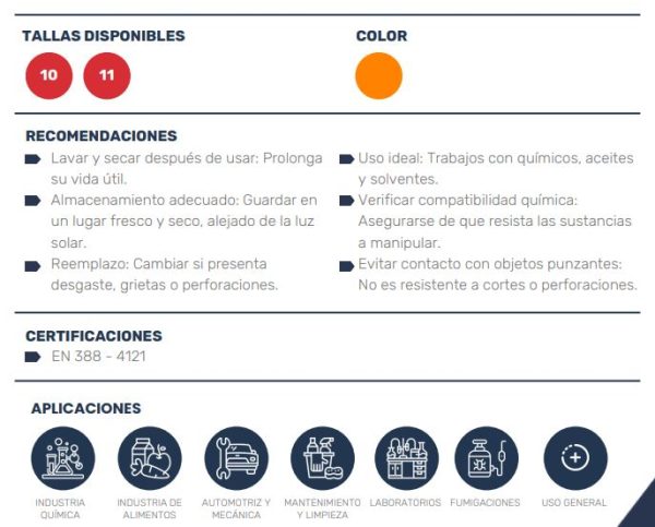 • Manejo de sustancias químicas: Resistencia a diversos productos químicos, proporcionando seguridad al usuario.