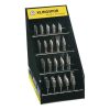 Las fresas contenidas en el juego de fresas de 40 piezas están dotadas de un dentado cruzado, el denominado Cut 6. Este dentado es la línea estrella de los dentados. Las ventajas del dentado cruzado radican en sus amplias posibilidades de empleo, así como en su manejo mejorado. Las fresas de metal duro con dentado cruzado son herramientas de alto rendimiento que garantizan un movimiento estable. El funcionamiento con pocas vibraciones de las fresas repercute positivamente en la protección en el trabajo y la calidad de los resultados. Otra característica típica del dentado cruzado es que produce virutas pequeñas. Las fresas contenidas en la caja de presentación ofrecen un amplio espectro de aplicaciones para el desbarbado, la rotura de cantos, el igualado de cordones de soldadura y el mecanizado de superficies. También el mecanizado de cantos interiores y de pequeñas áreas de difícil acceso se puede realizar sin problemas. Las fresas de metal duro son apropiadas para mecanizar diferentes materiales, tales como acero de construcción, hierro fundido, materiales resistentes a altas temperaturas o metales no ferrosos.