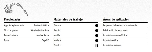 Como base para el disco abrasivo PS 33 CK, Klingspor utiliza un soporte de papel (papel C). Se trata de un papel semi-pesado que se puede cortar, arrancar y doblar con facilidad. Para mecanizar puntos difícilmente accesibles con la lijadora excéntrica, el papel abrasivo también se puede doblar o arrancar para permitir el lijado manual. Los granos de óxido de aluminio están fijados en el soporte de papel con la ayuda de resina sintética y dotados de un recubrimiento de resina sintética. Este barniz de acabado confiere su color al papel abrasivo y sirve como apoyo adicional frente a las fuerzas laterales que actúan sobre el grano durante el lijado. Al iniciar el trabajo de lijado, la capa de resina sintética que cubre el grano se va eliminando automáticamente, por lo cual no perjudica el rendimiento de lijado.