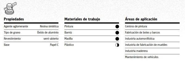 El disco abrasivo PS 73 CWK está disponible con los troquelados GLS 1, GLS 3 y GLS 47, así como sin agujeros. Gracias a las distintas formas de agujero, el producto abrasivo se puede utilizar en prácticamente todas las máquinas corrientes en el mercado. El diámetro es de 150 mm. El disco abrasivo PS 73 CWK está disponible con granulometrías gruesas a finas, de modo que el poder de remoción se puede elegir en función de cada tarea individual. También el uso de óxido de aluminio como tipo de grano contribuye al elevado poder de remoción. Como agente aglomerante se utiliza una resina sintética de alta calidad, y el grano es de distribución semi-abierta. Para el soporte se utiliza un soporte de papel (papel C).